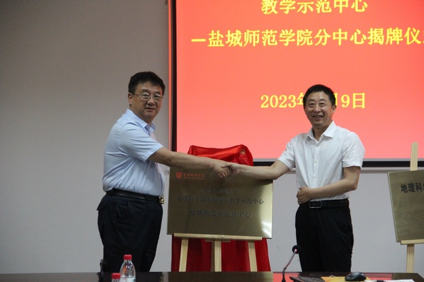 校领导为南京师范大学地理科学国家级实验教学中心—盐城师范学院分中心揭牌发表时间:2023-09-17 19:40 6月9日下午,南京师范大学地理科学国家级实验教学中心—盐城师范学院分中心揭牌仪式在城市与规划学院A410会议室隆重举行。学校党委常委、副校长汤克明,南京师范大学地理科学国家级实验教学中心主任、教育部高等学校地理科学类专业教学指导委员会副主任汤国安,教务处处长易高峰出席揭牌仪式,城市与规划学院院长李传武主持揭牌仪式。 汤克明感谢南京师范大学长期对我校的支持,他从“怎么看”“怎么想”“怎么做”三个方面对地理学科建设及分中心提出要求。他指出,站在全国看地理学科的现状,未来地理学科发展方向;思考学校地理科学专业目标定位、人才培养理念、专业特色凝练、内涵发展路径;高标准做好实验教学示范中心建设,将细节落实到实践教学体系的构建中,早日取得实质性成果。 易高峰在欢迎词中指出,搭建高水平的实验教学平台,是实现教学目标和学生能力培养的重要保障,希望城市与规划学院以分中心的成立为契机,深化与南京师范大学的合作,加快推进地理科学专业内涵建设。汤国安宣读分中心成立文件,汤克明和汤国安共同为分中心揭牌。 学校教务处相关负责同志、城市与规划学院党政班子及师生代表参加会议。